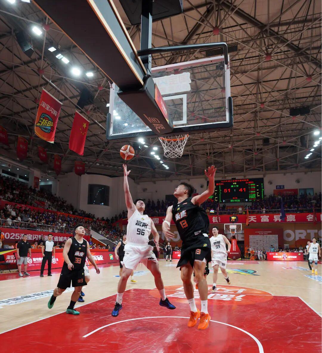 进入下半场,庆元队提升进攻效率,将分差追至个位数。余姚队继续主攻内线,通过篮下得分予以回应。