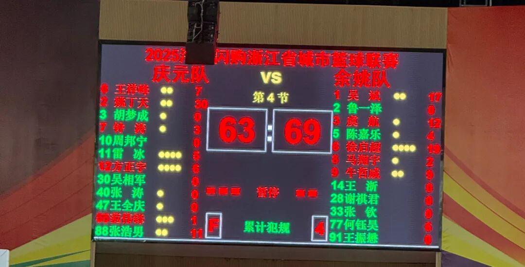 余姚以69:63胜庆元,赢得浙BA城市争霸赛首胜!
